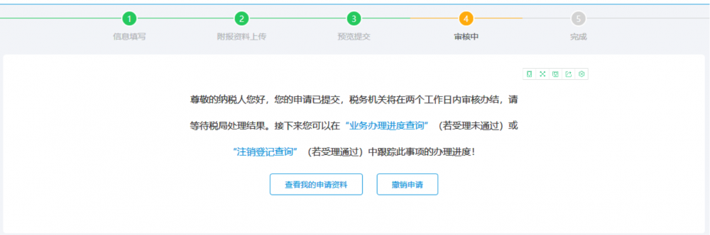 點(diǎn)擊【撤銷申請】按鈕,可以在稅務(wù)機(jī)關(guān)審核前,撤銷本次申請。