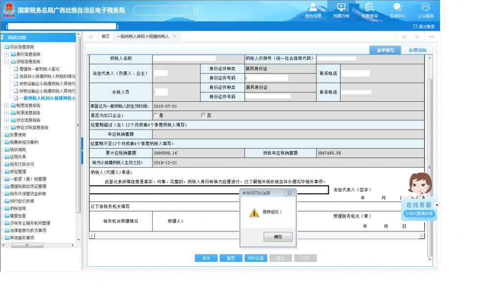 填寫表單,點(diǎn)擊【保存】按鈕,待頁面彈出提示框提示“保存成功”
