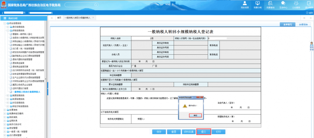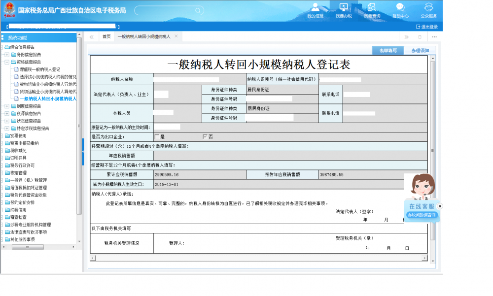(一)填寫《一般納稅人轉(zhuǎn)回小規(guī)模納稅人登記表》