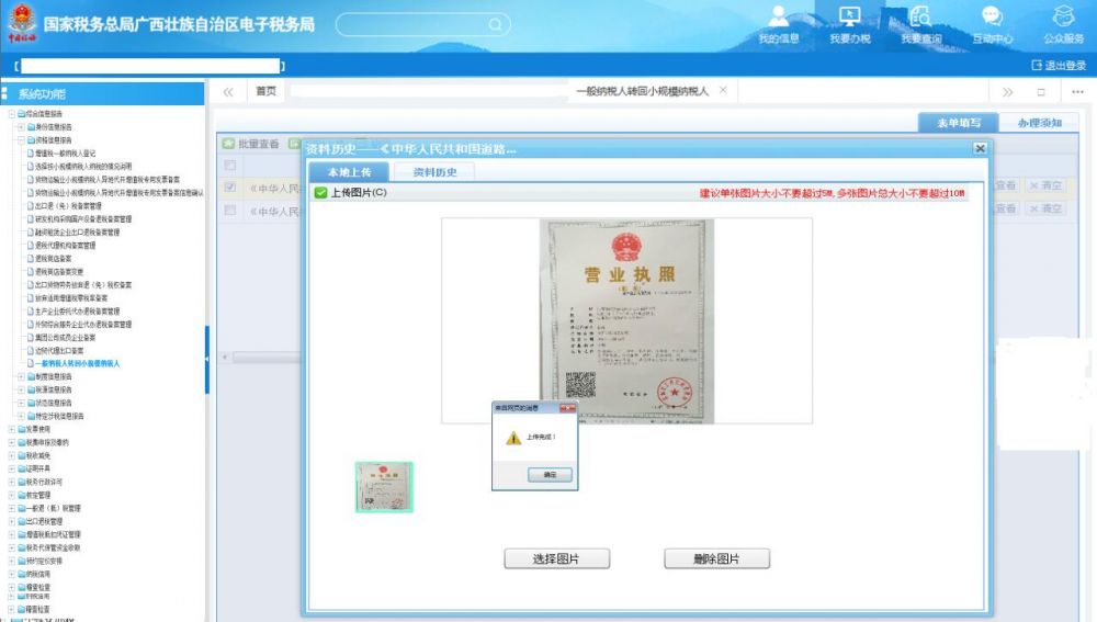 點(diǎn)擊【選擇】/【掃描】/【掃碼上傳】按鈕,從本地選擇一張圖片,點(diǎn)擊【上傳圖片】