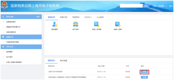 上海市電子稅務(wù)局——我要辦稅——綜合信息報告——稅源信息報告——注銷不動產(chǎn)項目報告