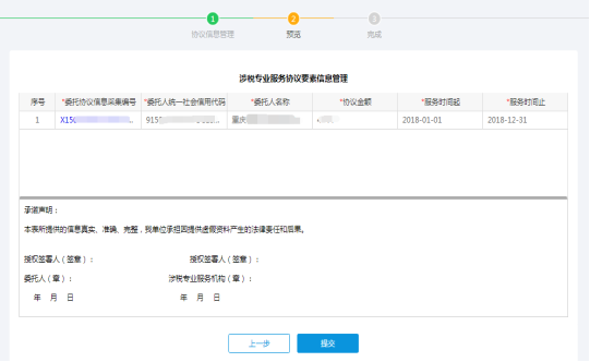 第五步:預覽提交。若有誤請點擊“上一步”進行修改,若確認無誤后即可點擊“提交”