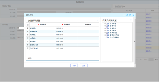 “快速權(quán)限設置”勾選里面的角色,則將授權(quán)該角色在“自定義權(quán)限設置”中對應的功能。
