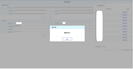 提示“刪除成功”則取消的對該用戶的授權(quán)。