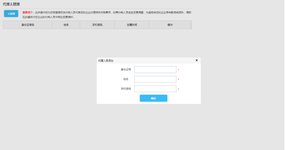第三步:在代理人員管理頁面中,點(diǎn)擊“新增”按鈕,彈出代理人員添加頁面。輸入身份證號等相關(guān)信息,點(diǎn)擊“確定”按鈕,新增人員成功。被添加的代理人員,需要選擇企業(yè)進(jìn)行代理操作,才能進(jìn)行代理辦稅操作。