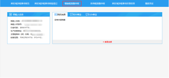 一、納稅人以企業(yè)身份登錄,點擊【我要辦稅】 - 【信息報告】 - 【稅源信息報告】-【跨區(qū)域稅源信息報告】,進入功能模塊。