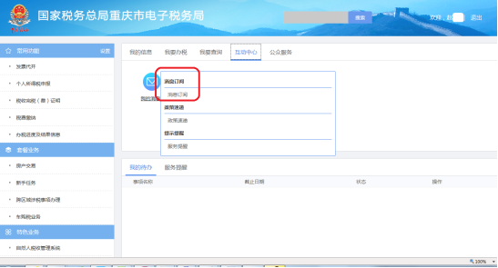 操作流程:登陸重慶市電子稅務(wù)局-互動(dòng)中心-我的消息-消息訂閱
