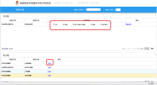 對(duì)納稅人已開通的消息進(jìn)行分類訂閱,選擇接收消息的渠道。