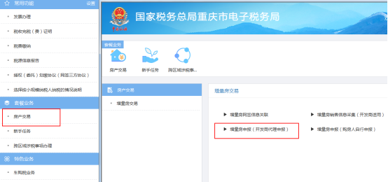 操作流程:登陸電子稅務(wù)局-套餐業(yè)務(wù)-房產(chǎn)交易-增量房申報-增量房申報(開發(fā)商代理申報)