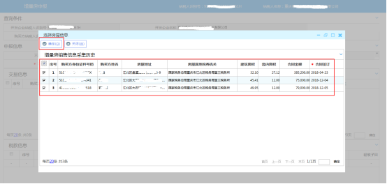 確定后,選擇增量房銷售信息采集信息,點(diǎn)擊“確定”,系統(tǒng)根據(jù)購買方房屋套次自動獲取減免信息