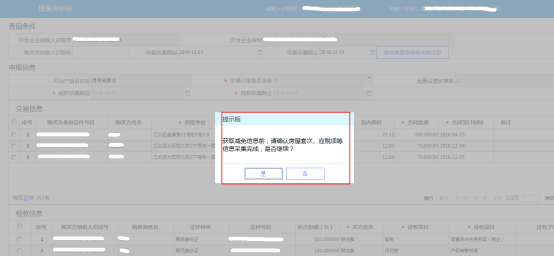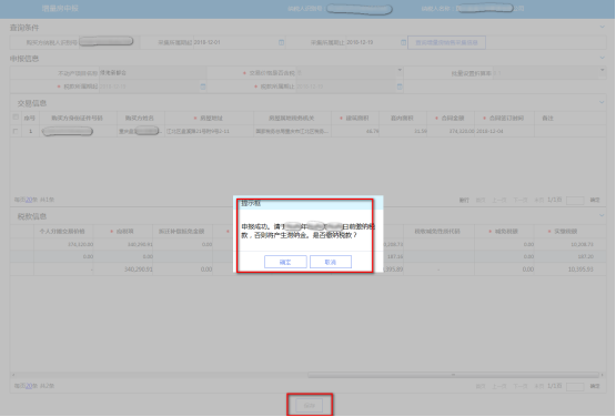 點(diǎn)擊“是”系統(tǒng)自動帶出交易信息及稅款信息