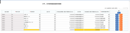 找到“附表1-大氣、水污染物基礎(chǔ)信息采集表”,點(diǎn)擊【進(jìn)入采集】按鈕,打開(kāi)“大氣、水污染物基礎(chǔ)信息采集表”頁(yè)面,如下圖所示。進(jìn)入此附表的前提是:在基礎(chǔ)信息采集主表的“主要污染物類別”選有“大氣污染物”或者“水污染物”一類,且已經(jīng)維護(hù)相關(guān)“大氣污染物”或者“水污染物”的排放口稅源采集。