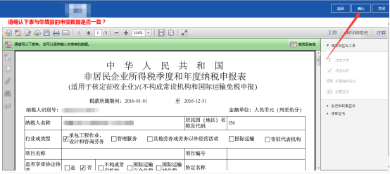 5、數(shù)據(jù)填寫(xiě)無(wú)誤后,點(diǎn)擊右上角的【申報(bào)】,生成PDF報(bào)表。