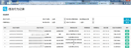 進(jìn)入納稅人違法行為記錄頁(yè)面