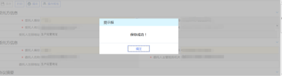 3、 必錄信息錄入完成后,點擊“保存”,提示保存成功。