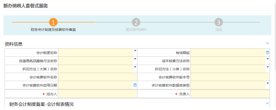 該套餐涵蓋的事項包括:財務(wù)會計制度備案、財務(wù)報表鑒定、存款賬戶賬號報告、一般納稅人資格登記、發(fā)票供票資格、最高開票限額行政許可。將新辦納稅人需辦理的以上辦稅事項,整合成一個線上辦稅流程,將原先需要填寫的申請表單,整合成一套綜合申請表。