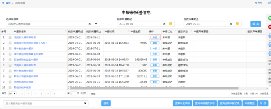 3、勾選申報(bào)對(duì)應(yīng)的序號(hào)框,點(diǎn)擊“申報(bào)”按鈕,進(jìn)入申報(bào)界面進(jìn)行申報(bào)繳稅。