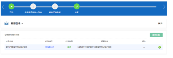 1.根據(jù)納稅人基本信息,掃描我要優(yōu)惠的前置條件,檢測(cè)類型為強(qiáng)制檢測(cè)。