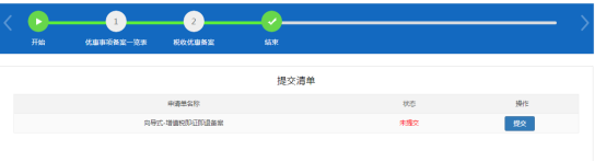 4.填寫完成后點(diǎn)擊下一步進(jìn)入申請(qǐng)單提交界面,點(diǎn)擊提交可提交相關(guān)優(yōu)惠備案。