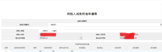 1.進(jìn)入稅收減免核準(zhǔn)界面,填寫相關(guān)信息并提交。