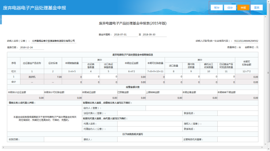第二步:在申報稅(費)清冊中選擇廢棄電器電子產(chǎn)品處理基金申報2015版,點擊填寫申報表,進入填寫界面。