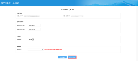 ? 進入房產(chǎn)稅申報(優(yōu)化版)申報首頁面。