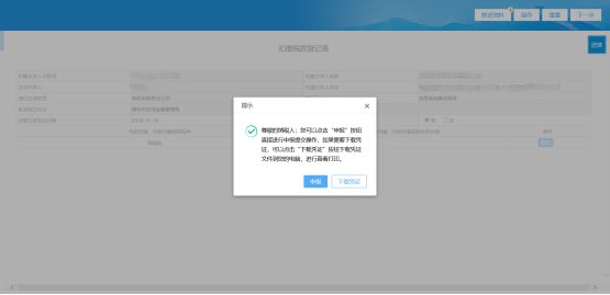 ? 文件上傳完畢后,關(guān)閉上傳窗口,點(diǎn)擊【下一步】,若需要保存填寫(xiě)的備案信息則點(diǎn)擊【下載憑證】保存文檔;需要提交的,點(diǎn)擊【申報(bào)】進(jìn)行提交,出現(xiàn)涉稅事項(xiàng)受理系統(tǒng)回執(zhí)單,等待稅務(wù)人員審批即可。