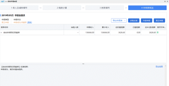 2.點擊【綜合所得申報】進(jìn)入申報填寫界面,點擊【4.申報表報送】查看申報結(jié)果。