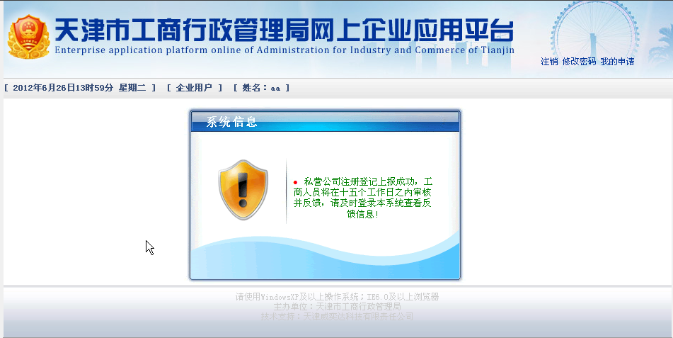 天津市工商行政管理局企業(yè)網(wǎng)上應(yīng)用平臺(tái)企業(yè)登記設(shè)立申請(qǐng)流程說明