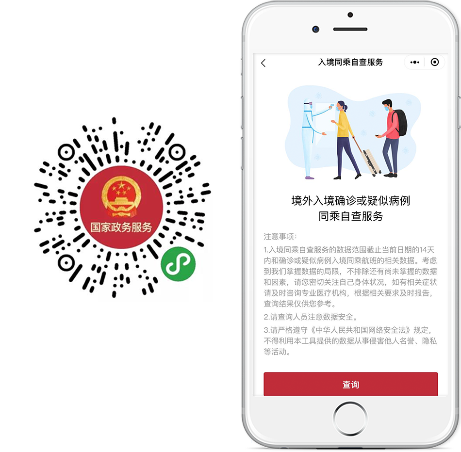 14天內(nèi)入境,同航班是否有確診或疑似患者?中國公民可通過“入境同乘自查服務(wù)”,只需刷臉登錄,可輕松查詢入境時是否與確診或疑似病例同乘同一航班,助您做好風險自查,及時掌握個人健康風險。