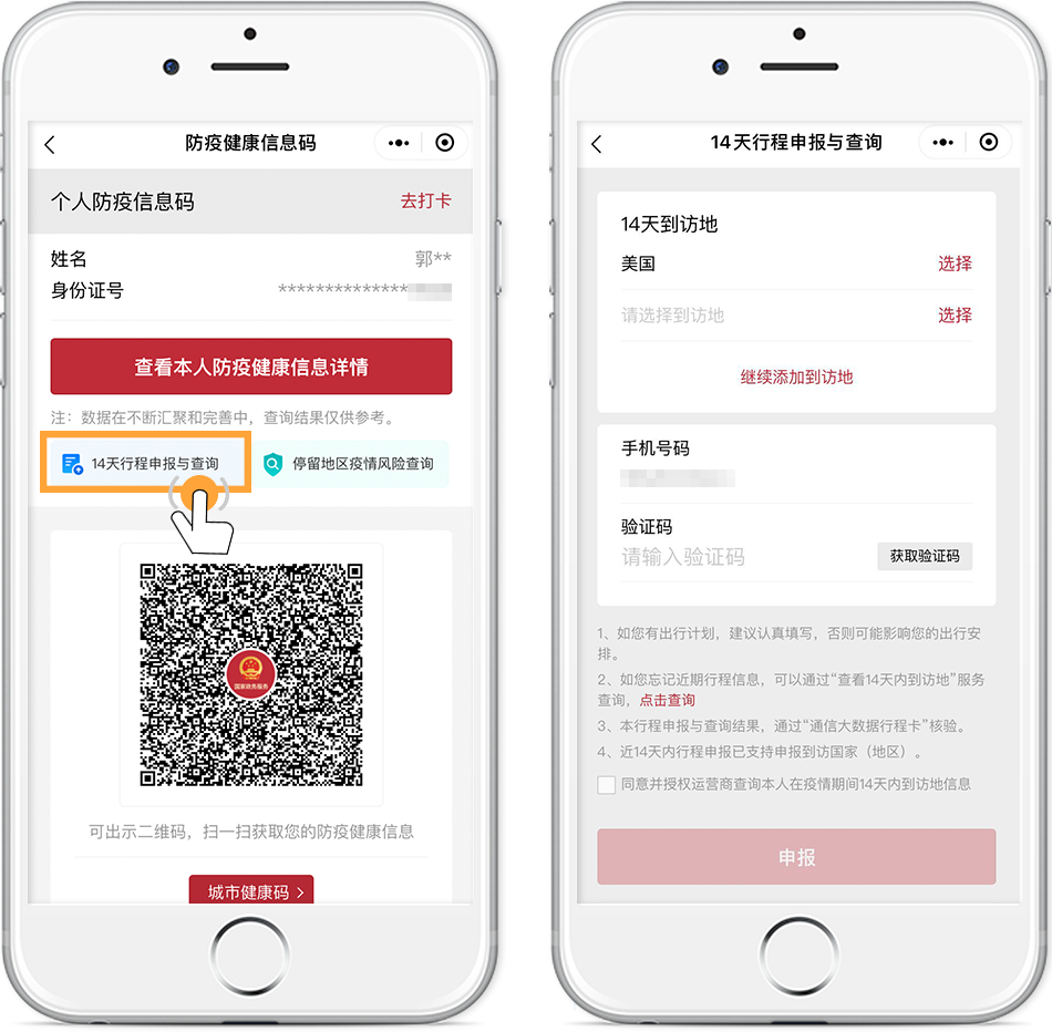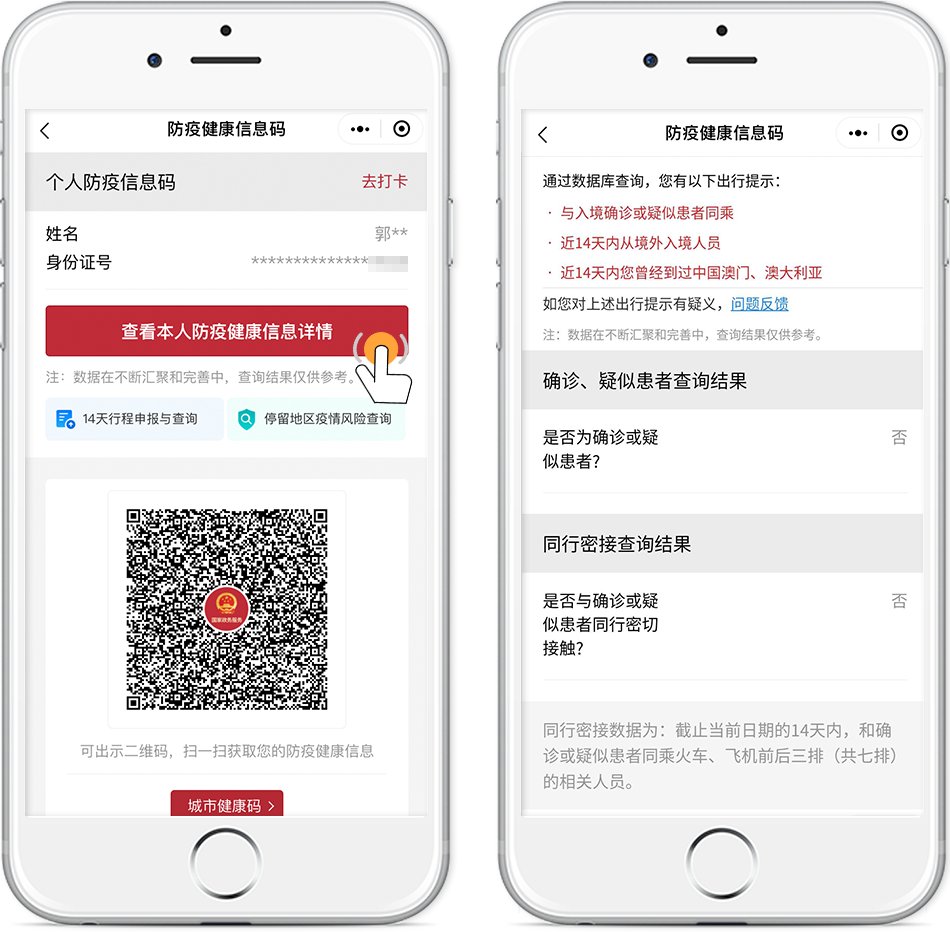 核驗是否為近14天入境人員?如何申報個人近14天的境外行程?近期入境時是否與確診、疑似患者同乘航班?“防疫健康信息碼”入境信息服務(wù)能幫您!
