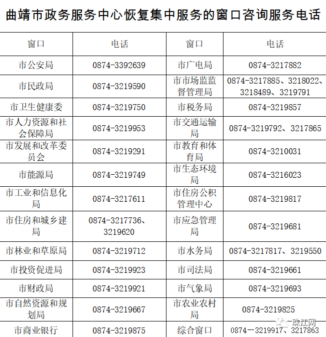 曲靖市政務(wù)服務(wù)中心辦事大廳窗口咨詢電話
