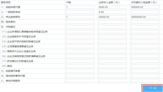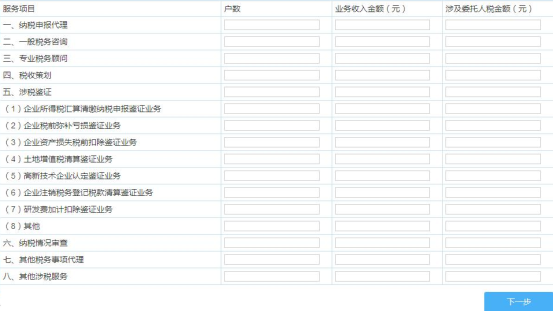 注:帶“*”的為必填項;【業(yè)務收入金額】填寫提供涉稅專業(yè)服務實際取得的收入,【涉及委托人稅款金額】填寫提供涉稅專業(yè)服務涉及委托人稅款金額。