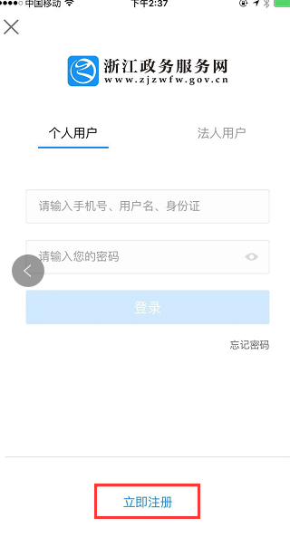 - 第一步、點(diǎn)擊圖中的【立即注冊賬號(hào)】或【個(gè)人注冊】進(jìn)入創(chuàng)建賬號(hào)頁面。