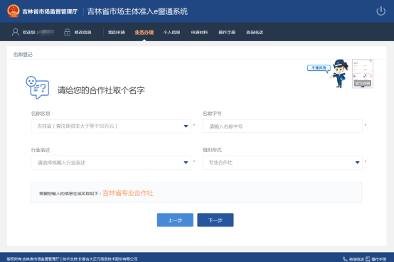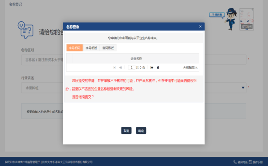 19) 稍做等待,后臺(tái)進(jìn)行名稱查重,查重完成,點(diǎn)擊【下一步】按鈕,如下圖。
