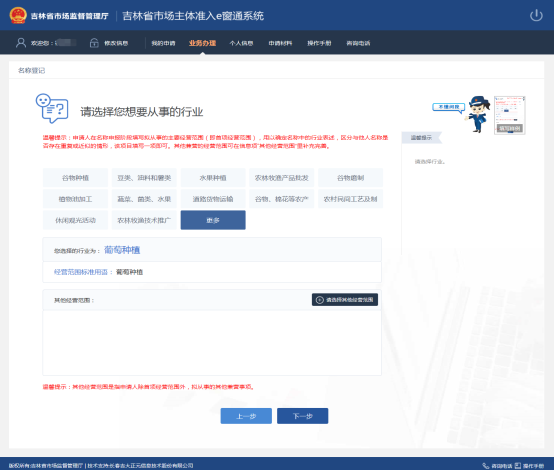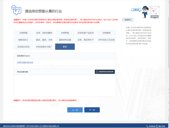 11) 選擇“請(qǐng)選擇您想要從事的行業(yè)”,以水果種植為例,如下圖。
