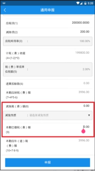 第一步,首先根據(jù)實(shí)際情況,輸入應(yīng)稅項(xiàng),減除項(xiàng),減免性質(zhì),減免稅額及本期已繳稅額,自動(dòng)計(jì)算應(yīng)補(bǔ)退稅額;