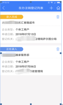 2、 點(diǎn)擊右上角“+”號(hào),可以選擇需要辦理注銷登記的企業(yè),其界面如下: