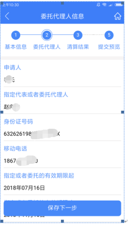 2、 點(diǎn)擊“保存下一步”,進(jìn)入“委托代理人信息頁面”。