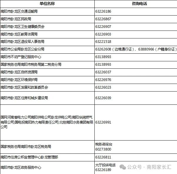 為了進(jìn)一步提升政務(wù)服務(wù)質(zhì)量,優(yōu)化服務(wù)環(huán)境,方便企業(yè)、群眾咨詢政務(wù)服務(wù)各事項辦理情況,現(xiàn)將南陽市臥龍區(qū)政務(wù)服務(wù)中心各窗口業(yè)務(wù)咨詢電話公示如下: