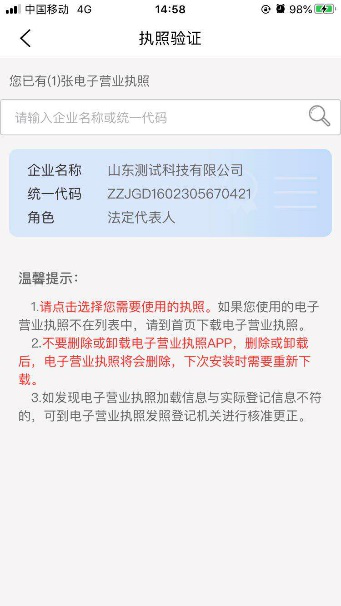 2.獲取企業(yè)登記部門共享推送的電子營業(yè)執(zhí)照信息。