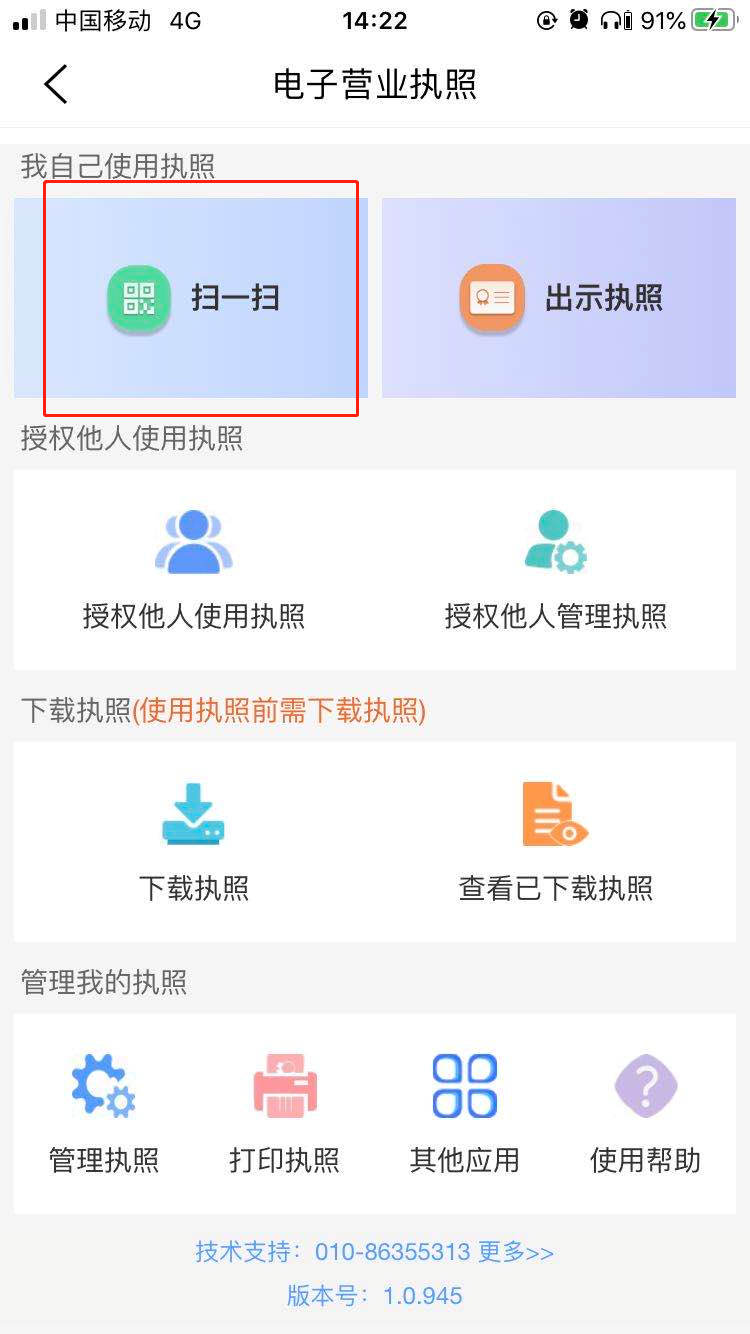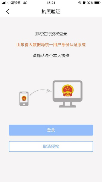 用電子營業(yè)執(zhí)照應(yīng)用程序中的“掃一掃”,即可掃碼登錄相關(guān)系統(tǒng)。