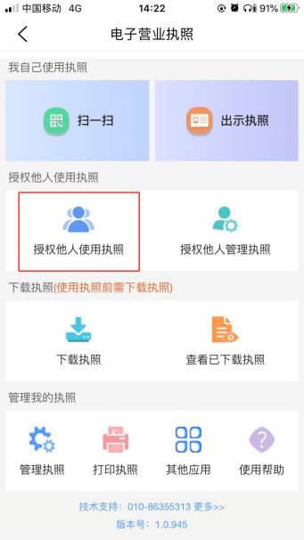 法定代表人和證照管理員又該如何授權(quán)他人使用電子營業(yè)執(zhí)照?