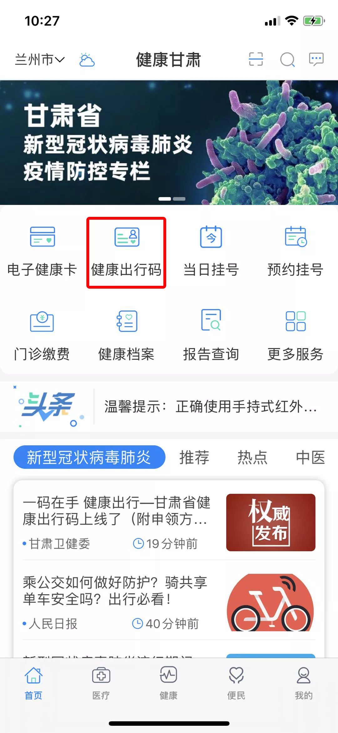 甘肅省新冠肺炎疫情聯(lián)防聯(lián)控領(lǐng)導(dǎo)小組辦公室發(fā)出通告,為配合甘肅省新冠肺炎疫情防控期間人員管理工作,居民可通過(guò)申領(lǐng)甘肅省“健康出行碼”、國(guó)家政務(wù)服務(wù)平臺(tái)推出的“防疫健康信息碼”,或在居住地街道辦事處或鎮(zhèn)政府開(kāi)具健康證明等作為入甘身體健康的依據(jù)。