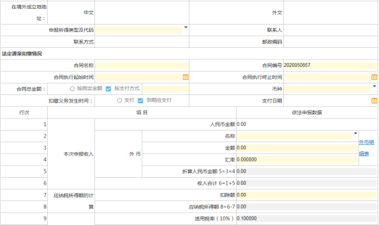 第三步:扣繳義務(wù)人類型根據(jù)實(shí)際情況自行選擇。選擇指定扣繳或法定源泉扣繳,均會彈出相應(yīng)的合同備案信息??勺孕行略?。