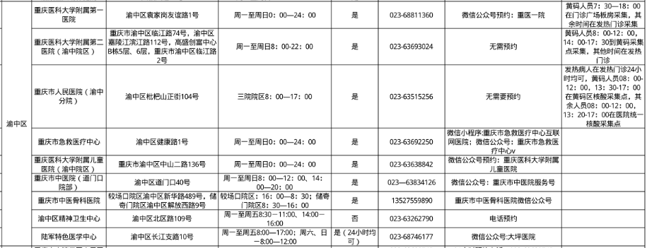 重慶市渝中區(qū)核酸檢測(cè)機(jī)構(gòu)地址及預(yù)約咨詢電話