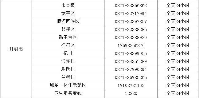 開封市新冠疫情防控熱線電話:12320/0371-23866862 ;