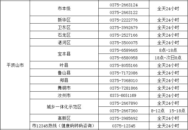平頂山市新冠疫情防控指揮部咨詢電話:0375-2663124;