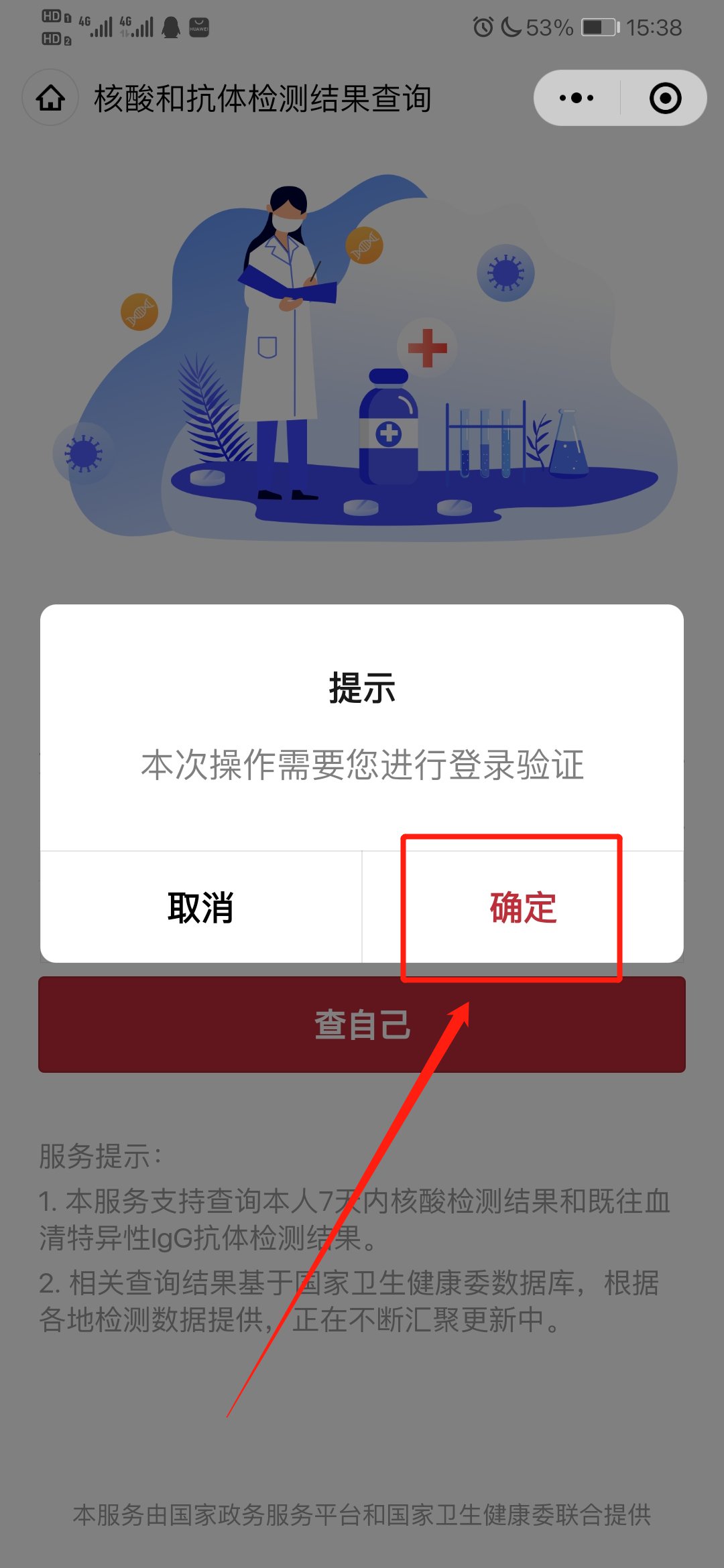 小編提示:僅支持查詢本人7天內(nèi)的核酸檢測結(jié)果和既往血清特異性lgG抗體檢測結(jié)果哦。
