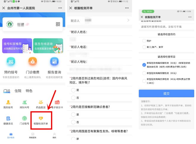 3、臺州市第一人民醫(yī)院核酸檢測攻略